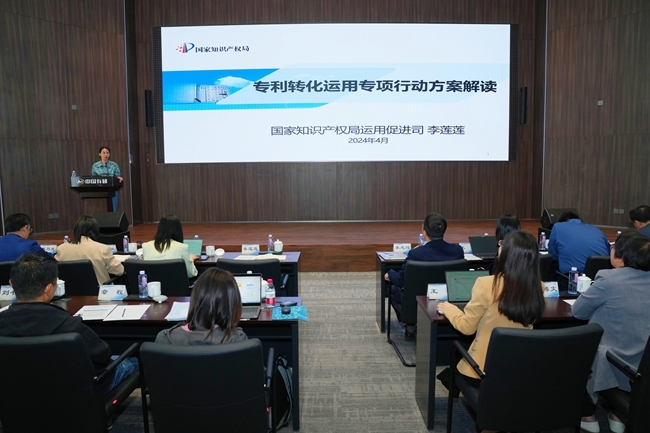 李蓮蓮做《專利轉化運用專項行動方案解讀》主題報告,從方案出臺的背景、主要任務等方面進行深入講解,并對中央企業(yè)如何做好知識產(chǎn)權工作提出了有關思考和建議。