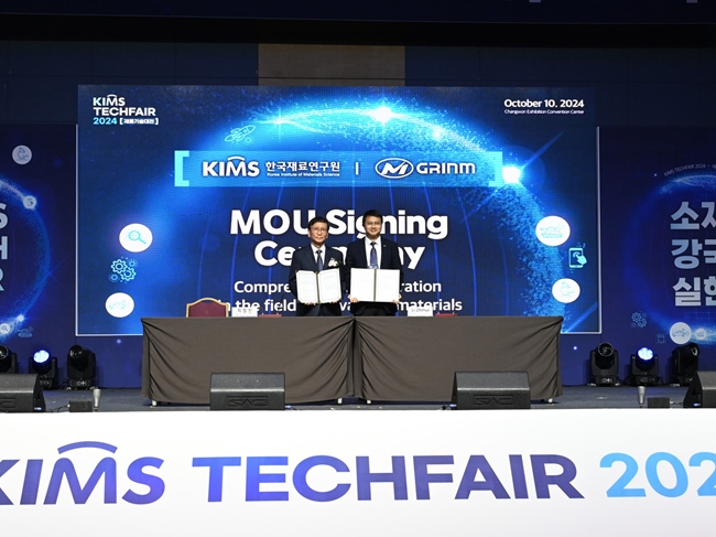 10月8日至12日,中國有研黨委副書記李志輝到韓國昌原市出席KOREA INSTITUTE OF MATERIALS SCIENCE(KIMS)2024年科技展會,與KIMS主席Chuljin Choi進行了友好會晤,并代表中國有研與KIMS簽訂合作備忘錄。