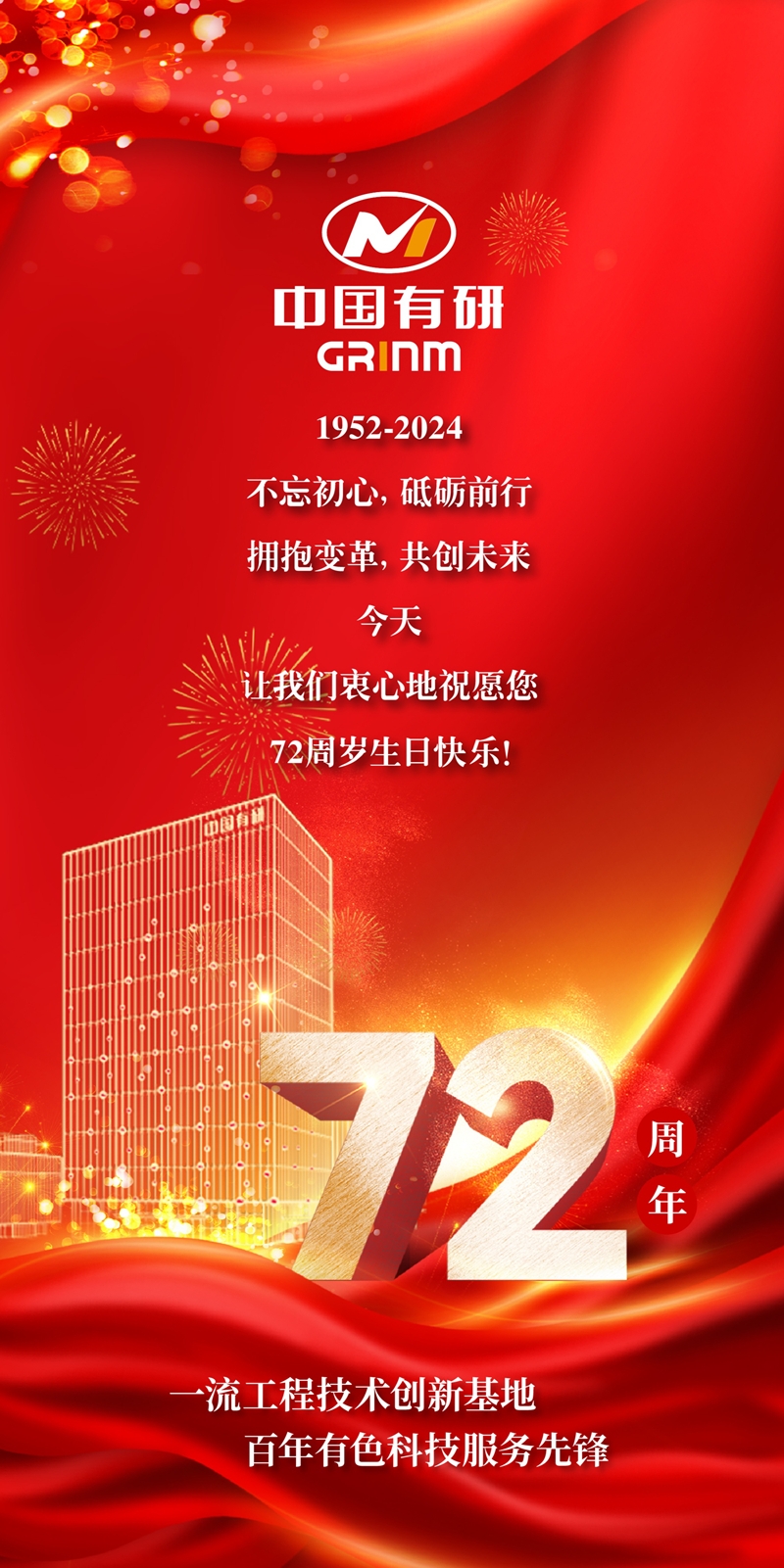 今天!慶祝中國(guó)有研成立72周年!