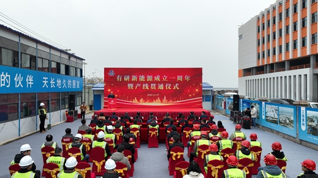 儀式上,有研新能源總經(jīng)理張向軍介紹了項目情況和工作進(jìn)展,胡建軍、胡軍分別致辭,表達(dá)對公司成立一周年和產(chǎn)線貫通的祝賀。