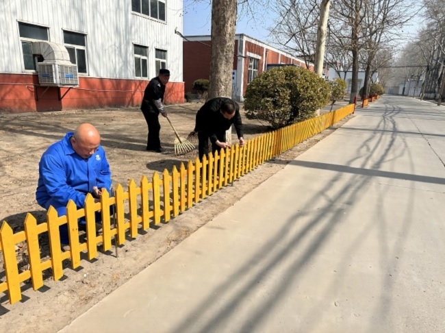 二部園區(qū)職工利用業(yè)余時間收集廢舊包裝箱、鐵管、木板等廢舊物資,自己動手制作路邊道路護欄,變廢為寶美化園區(qū)環(huán)境。花期將至,綠化組職工在花房精心培育各種花卉,很多花種是職工們從自家?guī)淼姆N子,職工們以園區(qū)為家,為二部園區(qū)增添一抹靚麗的春色。