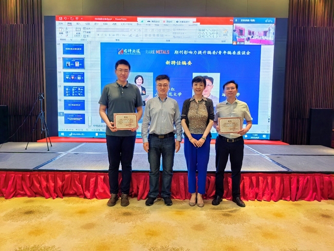 在《Rare Metals》期刊影響力提升編委/青年編委座談會上,主編屠海令院士指出,《Rare Metals》取得的成績?nèi)Q于各位作者、編輯及編委的不懈努力,要銳意進(jìn)取、奮楫篤行,將《Rare Metals》打造成為世界一流的學(xué)術(shù)交流平臺,各位編委、編輯要圍繞《Rare Metals》高質(zhì)量發(fā)展積極建言獻(xiàn)策。錢九紅及第一副主編侯仰龍為山西師范大學(xué)校長許小紅、鄧意達(dá)頒發(fā)了新任編委聘書,并向優(yōu)秀編委頒獎。