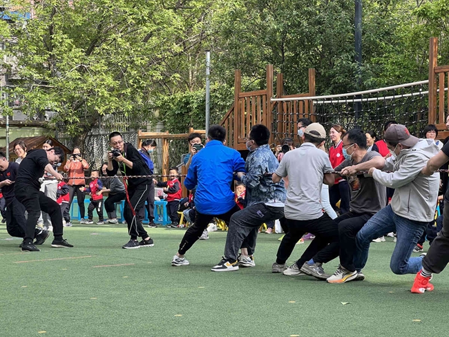 本屆運(yùn)動(dòng)會(huì)上,家長(zhǎng)們也進(jìn)行了激烈的比拼,為孩子們做出了榜樣,家長(zhǎng)競(jìng)技“齊心協(xié)力”、“接力賽”將現(xiàn)場(chǎng)氣氛推向高潮,孩子們?cè)谝慌约佑蛥群埃瑲g呼雀躍,場(chǎng)面十分熱烈。游戲場(chǎng)上時(shí)時(shí)傳來掌聲與笑聲,整個(gè)運(yùn)動(dòng)場(chǎng)上瞬間變成了歡樂的海洋。此時(shí)此刻,爸爸媽媽是孩子們的大朋友,一起游戲、一起運(yùn)動(dòng)、一起享受快樂時(shí)光!這才是運(yùn)動(dòng)該有的樣子!