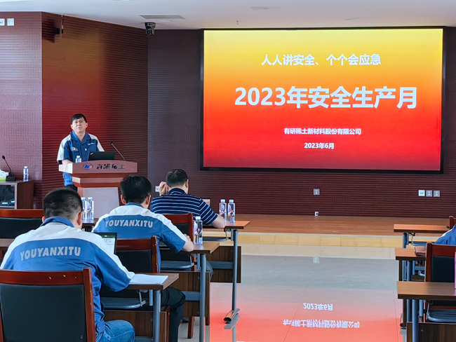 在全國第22個“安全生產(chǎn)月”之際,為進一步加大安全生產(chǎn)宣傳力度,推動重大事故隱患專項整治2023行動工作任務有效落實,有研稀土于6月2日召開2023年“安全生產(chǎn)月”啟動儀式,今年安全生產(chǎn)月的主題是“人人講安全、個個會應急”。公司黨總支書記、總經(jīng)理、安委會主任劉榮輝出席會議并講話,安委會成員現(xiàn)場參加會議,子公司主要負責人及安全管理人員線上參會,會議由副總經(jīng)理、安委會副主任王志強主持。