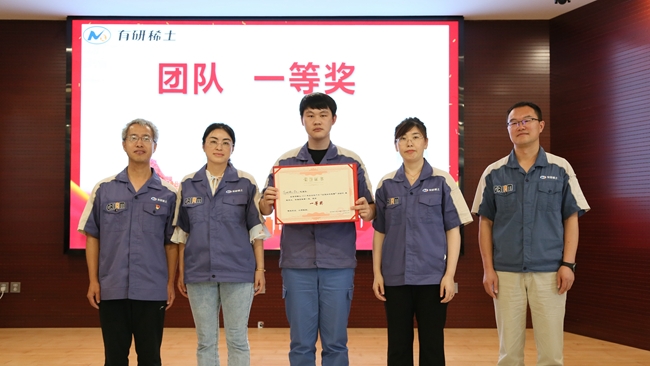 決賽現(xiàn)場,8支代表隊經(jīng)“個人必答題” “團隊必答題”“團隊搶答題” “團隊風險題”等環(huán)節(jié)激烈角逐,最終榮成稀土代表隊拔得頭籌,獲團隊第一名;青島稀土代表隊、稀土金屬及合金事業(yè)部代表隊分獲團隊比賽第二名和第三名。