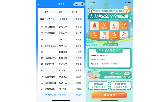 組織參加應(yīng)急普法知識競賽和全國安全生產(chǎn)月網(wǎng)絡(luò)知識競賽,通過參加競賽,不斷積累安全知識,熟悉相關(guān)法律法規(guī)、標(biāo)準(zhǔn)、規(guī)范內(nèi)容,從而梳理底線思維,提高全員安全意識。