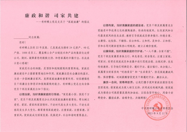 9月,有研新材黨委紀(jì)委連續(xù)第三年在全公司范圍開展黨風(fēng)廉政教育宣傳月活動(dòng)。本次活動(dòng)以“強(qiáng)化清廉實(shí)干擔(dān)當(dāng),凝心聚力攻堅(jiān)克難”為主題,聚焦“五個(gè)一”的具體任務(wù),結(jié)合紀(jì)檢干部隊(duì)伍教育整頓工作,通過黨規(guī)黨紀(jì)教育和警示宣傳引導(dǎo),促使廣大黨員干部堅(jiān)定理想信念,牢記初心使命,強(qiáng)化責(zé)任意識,嚴(yán)守紀(jì)律規(guī)矩,勇奉獻(xiàn)、敢擔(dān)當(dāng),全力以赴完成全年各項(xiàng)任務(wù)指標(biāo)。