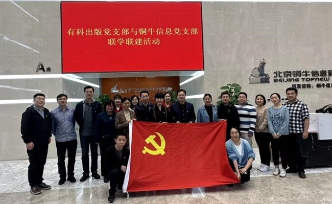 近日,有科出版黨員代表赴北京銅牛信息科技股份有限公司開展黨支部聯(lián)學(xué)聯(lián)建活動。有科出版黨支部書記錢九紅、銅牛信息黨支部書記高鴻波等20余人參加活動。