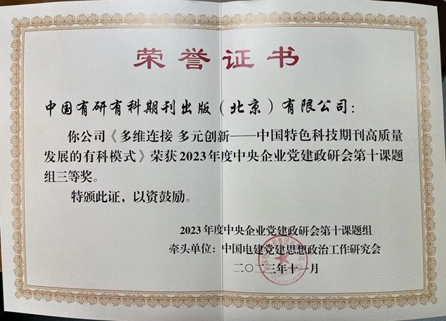 有科出版黨支部不斷探索黨建與業(yè)務(wù)工作深度融合新格局,以高質(zhì)量黨建引領(lǐng)保障高質(zhì)量發(fā)展,所形成的《加快培育世界一流科技期刊 為實(shí)現(xiàn)高水平科技自立自強(qiáng)貢獻(xiàn)有科出版力量》成果獲中國有研思想政治工作研究會第十八次年會二等獎。