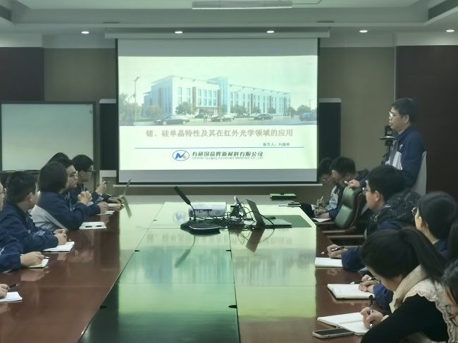 馮德伸帶領(lǐng)大家學(xué)習(xí)了紅外光學(xué)基礎(chǔ)知識(shí)以及紅外材料的基本特性,重點(diǎn)講解了公司生產(chǎn)的紅外鍺單晶和紅外硅單晶不同規(guī)格產(chǎn)品的性能、應(yīng)用領(lǐng)域和未來(lái)發(fā)展趨勢(shì),講座內(nèi)容深入淺出,與會(huì)人員受益匪淺。講座結(jié)束后,大家就講座內(nèi)容進(jìn)行了深入交流,進(jìn)一步加深了科技人員對(duì)講座內(nèi)容的理解。