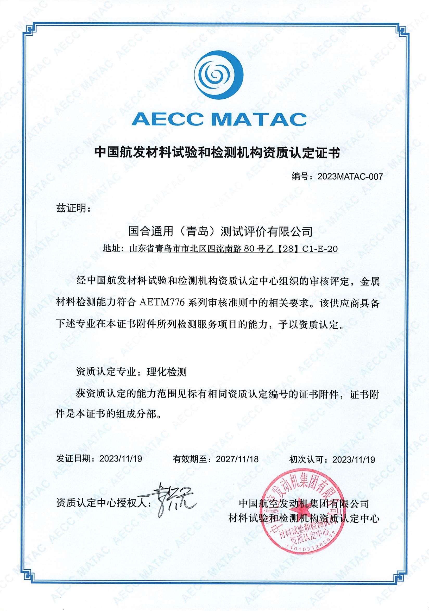 近日,國合青島成功獲得中國航發(fā)材料試驗和檢測機構資質認定。在本次資質認可過程中,評審專家組對國合青島的人員技術水平及實驗室管理體系運行情況進行了全面、系統的評估并給予了高度評價,對申請的40個代碼全部予以通過。該資質的獲得,既體現了國合青島在材料檢驗檢測領域的技術能力和質量管理水平,也代表國合青島符合了中國航發(fā)的專業(yè)要求,具備了承接各項重大任務的能力。