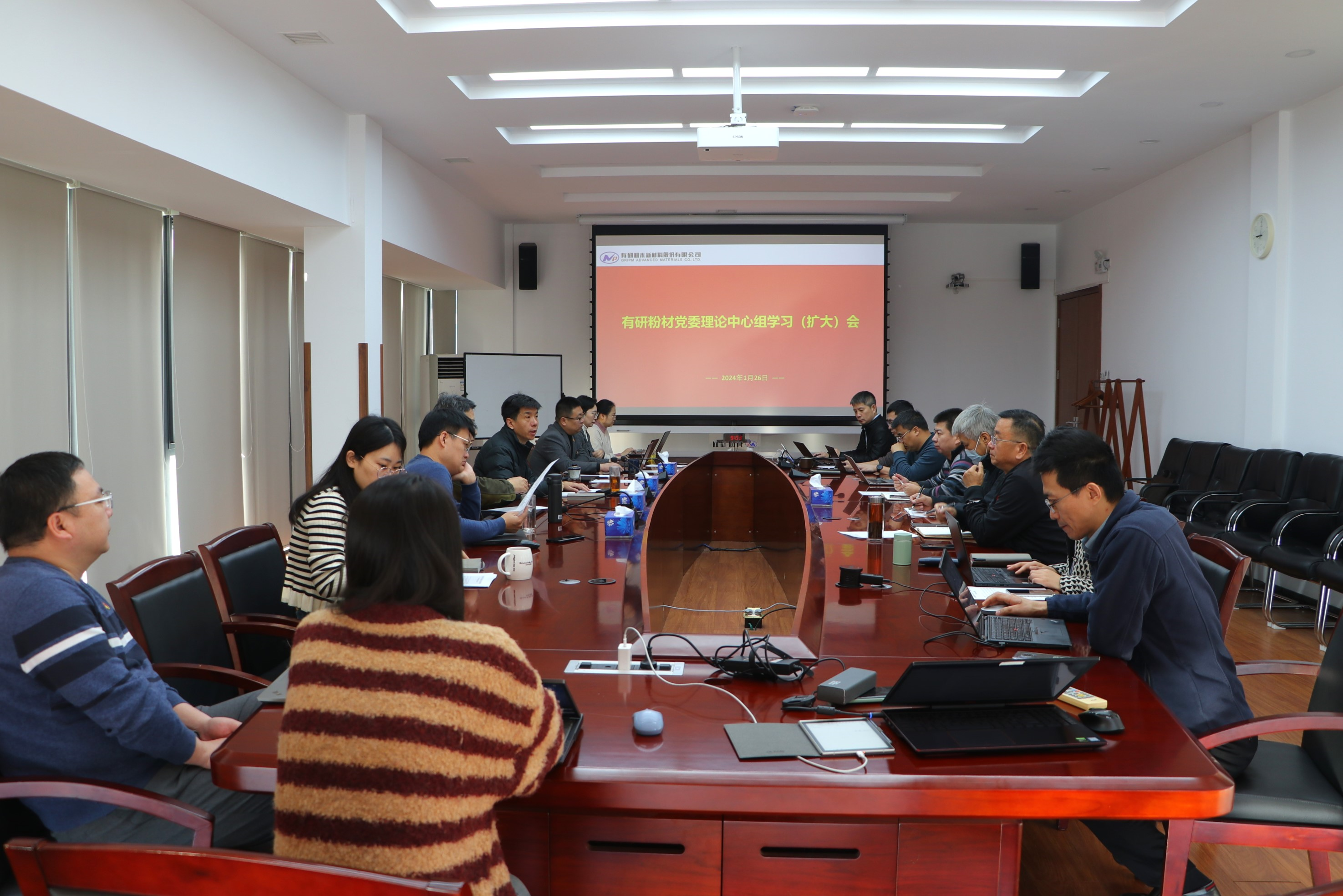 1月26日、2月2日,有研粉材黨委分兩個階段召開2024年第一次黨委理論中心組學(xué)習(xí)(擴(kuò)大)會。會議主題是:為深入學(xué)習(xí)貫徹黨的二十大和中央經(jīng)濟(jì)工作會議精神,落實中央企業(yè)負(fù)責(zé)人會議及中國有研關(guān)于戰(zhàn)略專項任務(wù)工作部署,圍繞“增材制造”和“未來產(chǎn)業(yè)”新領(lǐng)域,聚焦發(fā)展規(guī)劃、資源需求、存在問題等開展研討,以創(chuàng)新驅(qū)動公司高質(zhì)量發(fā)展。公司黨委書記、董事長、總經(jīng)理賀會軍主持會議。公司領(lǐng)導(dǎo)班子成員,職能部門負(fù)責(zé)人、所屬公司負(fù)責(zé)人等列席會議。