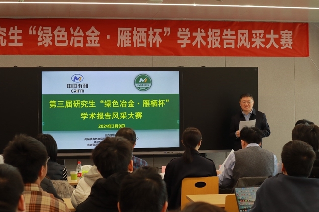 ·····為進(jìn)一步提高研究生的科學(xué)素養(yǎng),營造活躍的科技創(chuàng)新與學(xué)術(shù)交流氛圍,3月9日,在北京有色金屬研究總院研究生院和有研資源環(huán)境技術(shù)研究院(北京)有限公司指導(dǎo)下,高品質(zhì)有色金屬綠色特種冶金國家工程研究中心舉辦第三屆研究生“綠色冶金·雁棲杯”學(xué)術(shù)報(bào)告風(fēng)采大賽。研究生院副院長馮雪;有研資環(huán)院總經(jīng)理姚國成,副總經(jīng)理王星明、劉玉柱、向宇出席會(huì)議。有研資環(huán)院各事業(yè)部負(fù)責(zé)人、科研骨干、研究生等50余人參與活動(dòng)。大賽由綠色冶金國家工程研究中心主任溫建康主持。