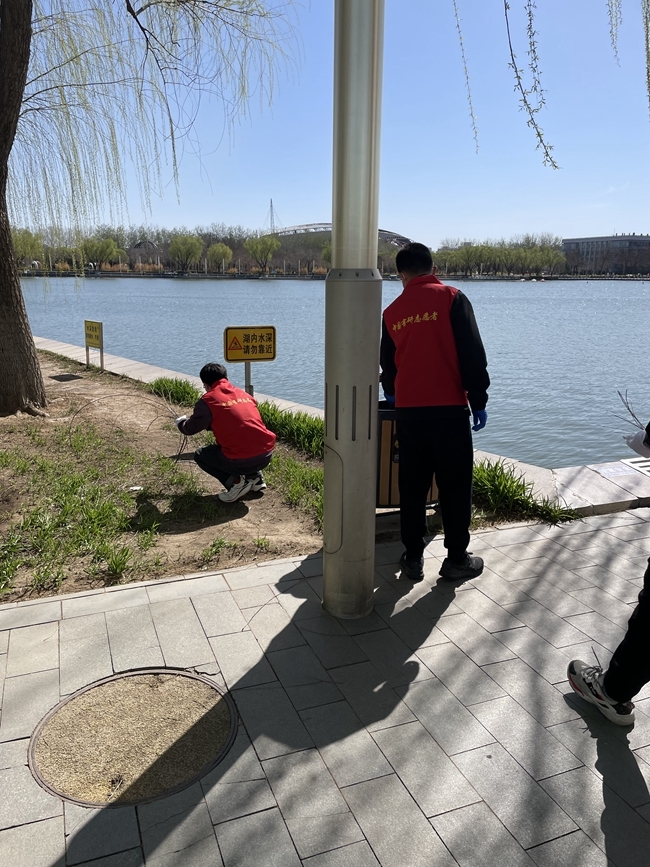 在團支部委員的組織下,團員青年分為三組,分別按照規(guī)定線路開展垃圾清掃活動。有的團員在公園草坪上彎腰撿拾各種廢棄物,并對廢紙、果皮、易拉罐等垃圾進行分類;有的則在湖邊小心翼翼地夾起漂浮在水面上的各種垃圾,努力保持湖面的潔凈。
