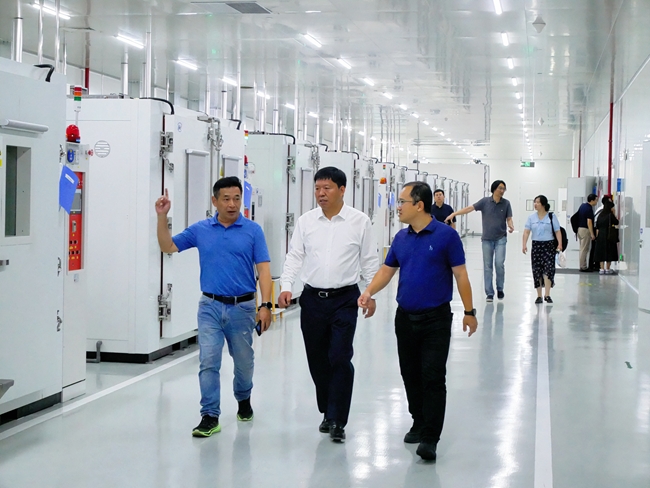 劉顯清一行實地參觀了有研廣東院南莊中試研發(fā)基地和固態(tài)電池研發(fā)中心,走進試驗室與項目團隊科研骨干進行現(xiàn)場交流,實地了解各項目的最新研發(fā)進展和產(chǎn)品的市場推廣情況。