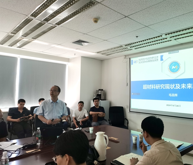 毛昌輝圍繞超材料概況、超材料物理原理、超材料經(jīng)典結(jié)構(gòu)及制備方法、國內(nèi)超材料領(lǐng)域研究概況、超材料研究領(lǐng)軍團(tuán)隊(duì)及超材料應(yīng)用展望等方面對超材料進(jìn)行了全面細(xì)致的講解,分析總結(jié)了現(xiàn)階段超材料發(fā)展存在的問題。交流環(huán)節(jié)中,與會(huì)人員就超材料在吸波、傳感、屏蔽等領(lǐng)域的科學(xué)問題及應(yīng)用前景進(jìn)行了深入研討。