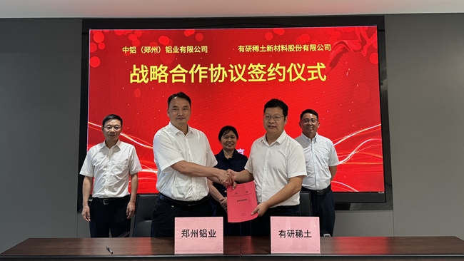 熊林表示,此次簽約是鄭州鋁業(yè)與有研稀土雙方技術(shù)、資源優(yōu)勢互補(bǔ)、互利共贏的新開始。希望雙方深入交流,不斷延伸產(chǎn)業(yè)鏈。同時,希望鄭州鋁業(yè)與有研稀土在其他領(lǐng)域深化合作,共同攜手發(fā)展。