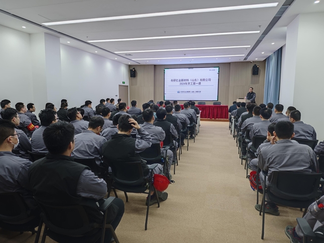 有研國晶輝總經(jīng)理曹波以“人人講安全,個個會應(yīng)急-暢通生命通道”為主題講授了安全公開課,有研億金(山東)總經(jīng)理滕海濤講授了“開工第一課”。