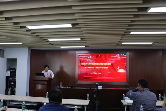 簽約儀式后,公司黨總支邀請中央黨校(國家行政學(xué)院)王海濱教授為全體黨員進(jìn)行了專題講座。王海濱教授以“深入學(xué)習(xí)貫徹黨的二十屆三中全會精神”為主題,從全會核心內(nèi)容、三大板塊、15個(gè)部分及60條具體措施等方面進(jìn)行了全面、深入的解讀。他緊密聯(lián)系實(shí)際工作場景,生動闡釋了會議精神的實(shí)質(zhì),并強(qiáng)調(diào)要將這些精神內(nèi)化于心、外化于行,轉(zhuǎn)化為推動企業(yè)改革與發(fā)展的重要動力。