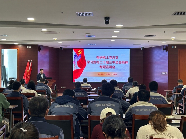 10月31日,有研稀土黨總支召開黨員大會(huì),傳達(dá)學(xué)習(xí)習(xí)近平總書記近期重要講話精神,專題宣講黨的二十屆三中全會(huì)精神。有研稀土黨總支全體黨員、技術(shù)生產(chǎn)骨干80余人參加了會(huì)議。