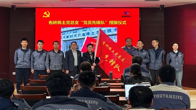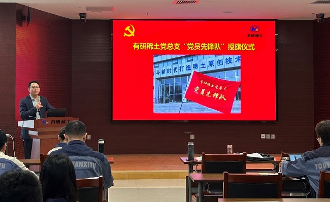 為深入貫徹黨的二十屆三中全會精神,增強(qiáng)核心功能,提升核心競爭力,結(jié)合有研稀土當(dāng)前形勢,有研稀土黨總支成立7個“黨員先鋒隊(duì)”。10月31日,公司舉行了命名授旗儀式,黨總支書記、總經(jīng)理劉榮輝為“黨員先鋒隊(duì)”授旗。