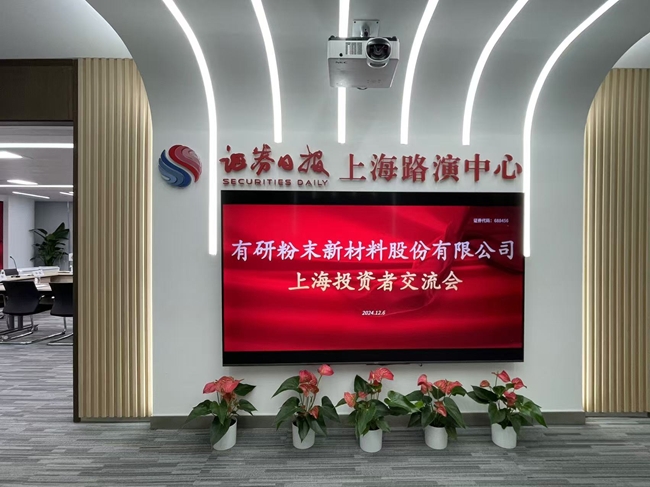 12月6日,有研粉材在證券日報上海路演中心舉辦投資者交流活動,吸引了數(shù)十家上海知名投資機構(gòu)和基金公司參與。此次交流活動的重點是與投資者進行深入溝通,分享公司的最新動態(tài)和發(fā)展規(guī)劃,解答投資者疑問。