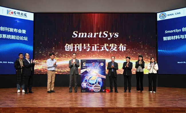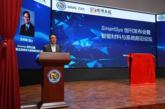 3月26日,由北京市科學(xué)技術(shù)委員會(huì)主管,中國(guó)科學(xué)院北京納米能源與系統(tǒng)研究所(簡(jiǎn)稱納米能源所)主辦,有科出版編輯出版的高起點(diǎn)新刊SmartSys(《智能系統(tǒng)(英文)》)創(chuàng)刊發(fā)布會(huì)暨智能材料與系統(tǒng)前沿論壇,在坐落于懷柔科學(xué)城的納米能源所召開(kāi)。中國(guó)科學(xué)技術(shù)協(xié)會(huì)科學(xué)技術(shù)創(chuàng)新部部長(zhǎng)劉興平,中國(guó)科學(xué)院外籍院士、納米能源所所長(zhǎng)、SmartSys主編王中林,國(guó)家自然科學(xué)基金委員會(huì)科學(xué)傳播與成果轉(zhuǎn)化中心主任彭杰,中國(guó)期刊協(xié)會(huì)副會(huì)長(zhǎng)、有科出版總編輯錢九紅,中國(guó)科學(xué)院文獻(xiàn)情報(bào)中心計(jì)量與評(píng)價(jià)部研究員馬崢,約翰威立國(guó)際出版集團(tuán)中國(guó)區(qū)合作出版總監(jiān)張大平,懷柔區(qū)科學(xué)技術(shù)委員會(huì)創(chuàng)新發(fā)展科馬順昌,北京大學(xué)材料與工程學(xué)院副院長(zhǎng)周歡萍等人出席。