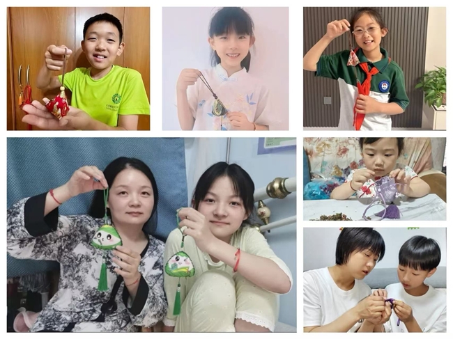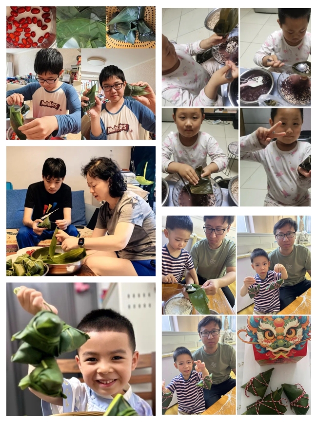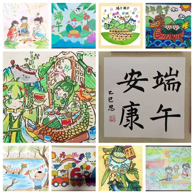 活動共設置三大環(huán)節(jié)。“繪夢端午·童心飛揚”中,孩子們以水彩、彩鉛為筆,圍繞端午習俗、六一歡樂主題自由創(chuàng)作,勾勒心中節(jié)日圖景,在一筆一畫的童真勾勒中傳承文化薪火。“香囊傳情·巧手制香”里,親子共同挑選香料,穿針引線縫制香囊,傳承傳統(tǒng)技藝,寄托安康祝福,在一針一線的親子協(xié)作中延續(xù)匠心精神。“粽享歡樂·親子‘食’光”時,家長與孩子協(xié)作包粽,折葉、填米、扎繩,讓傳統(tǒng)美食制作成為溫馨親子課堂,在一葉一粽的溫情包裹中厚植家國情懷。