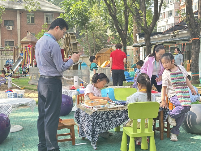 近日,有研幼兒園承擔(dān)了海淀區(qū)第19教研聯(lián)盟現(xiàn)場教研,開展“落實《評估指南》的自主游戲?qū)嵺`專題研修”活動?,F(xiàn)場教研以“一日生活中促進(jìn)幼兒自主性發(fā)展的研究——自主游戲的觀察與分析”為主題,通過現(xiàn)場觀摩和研討活動,進(jìn)一步提高教師觀察與分析幼兒游戲行為的專業(yè)能力。海淀區(qū)教師進(jìn)修學(xué)校學(xué)前教育研修室教研員田彭彭受邀擔(dān)任活動指導(dǎo)專家,來自16所幼兒園近40名教師參與此次活動。