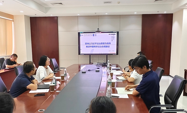 8月21日,國聯(lián)研究院黨委理論學(xué)習(xí)中心組召開擴(kuò)大學(xué)習(xí)會(huì),就法治合規(guī)開展專題學(xué)習(xí)。會(huì)議邀請集團(tuán)合規(guī)部總經(jīng)理尹嬌作“堅(jiān)持以習(xí)近平法治思想為指導(dǎo) 推進(jìn)中國有研法治合規(guī)建設(shè)”為題的專題講座。公司黨委領(lǐng)導(dǎo)班子、中層管理人員參加學(xué)習(xí)。