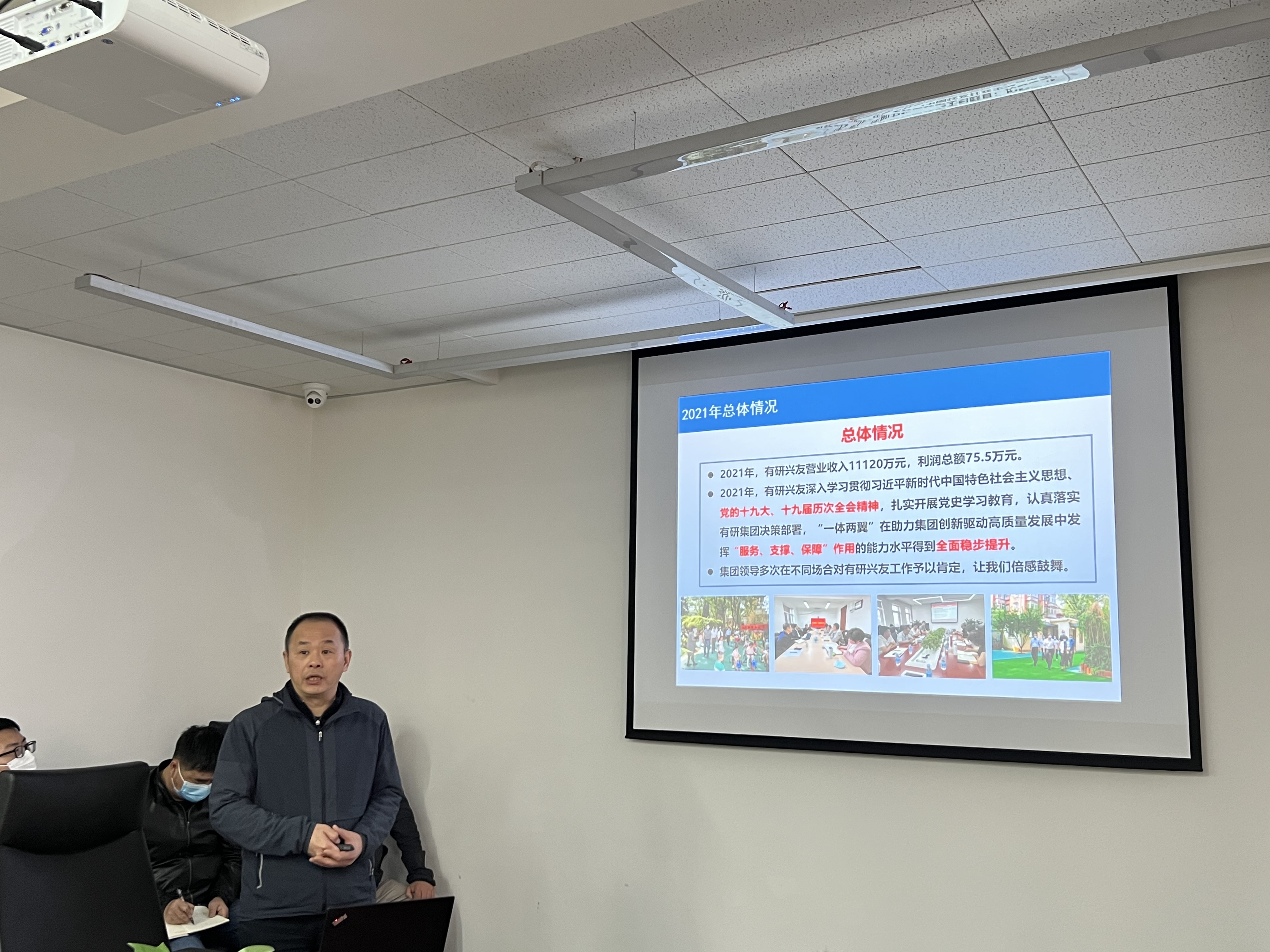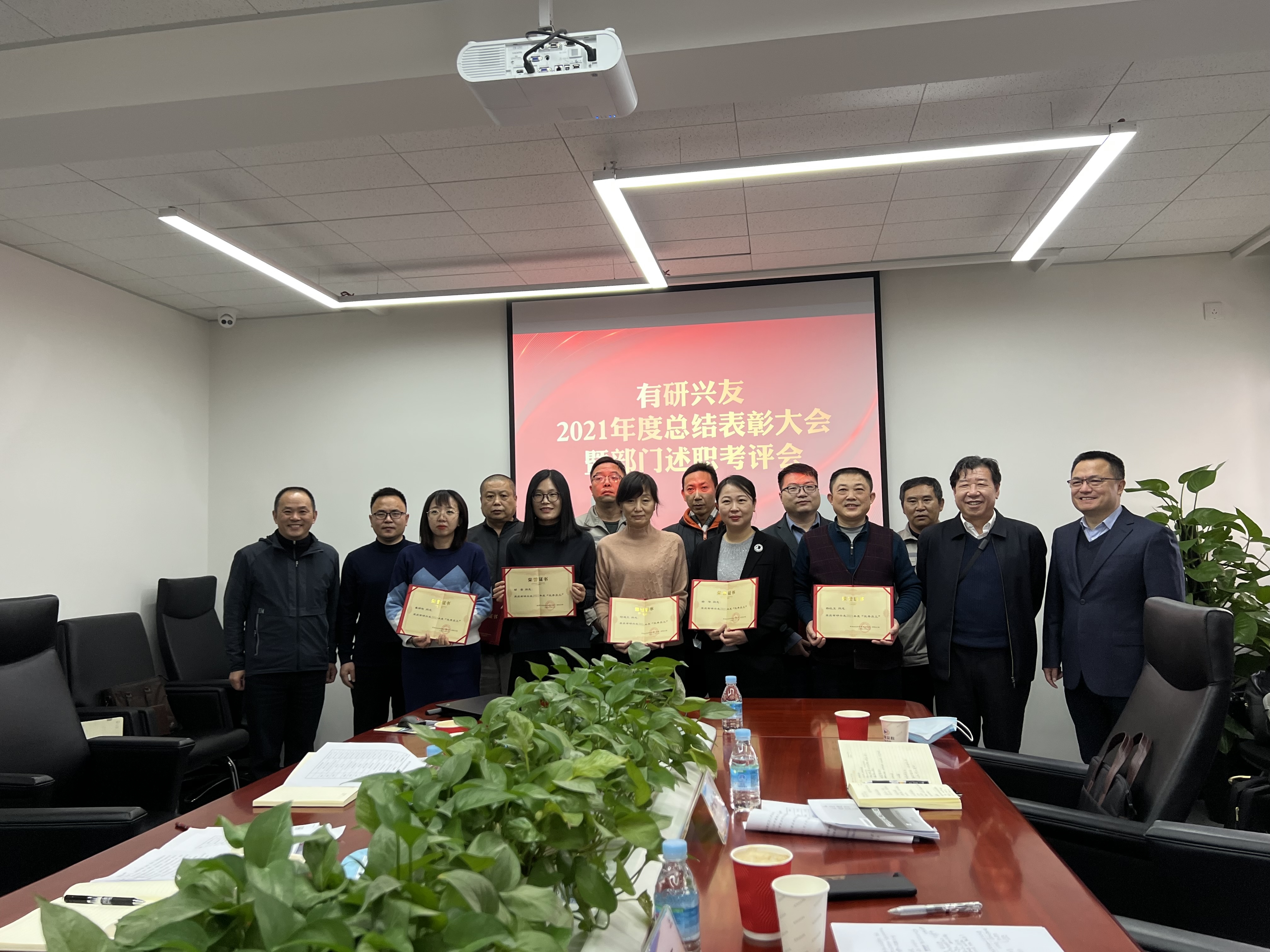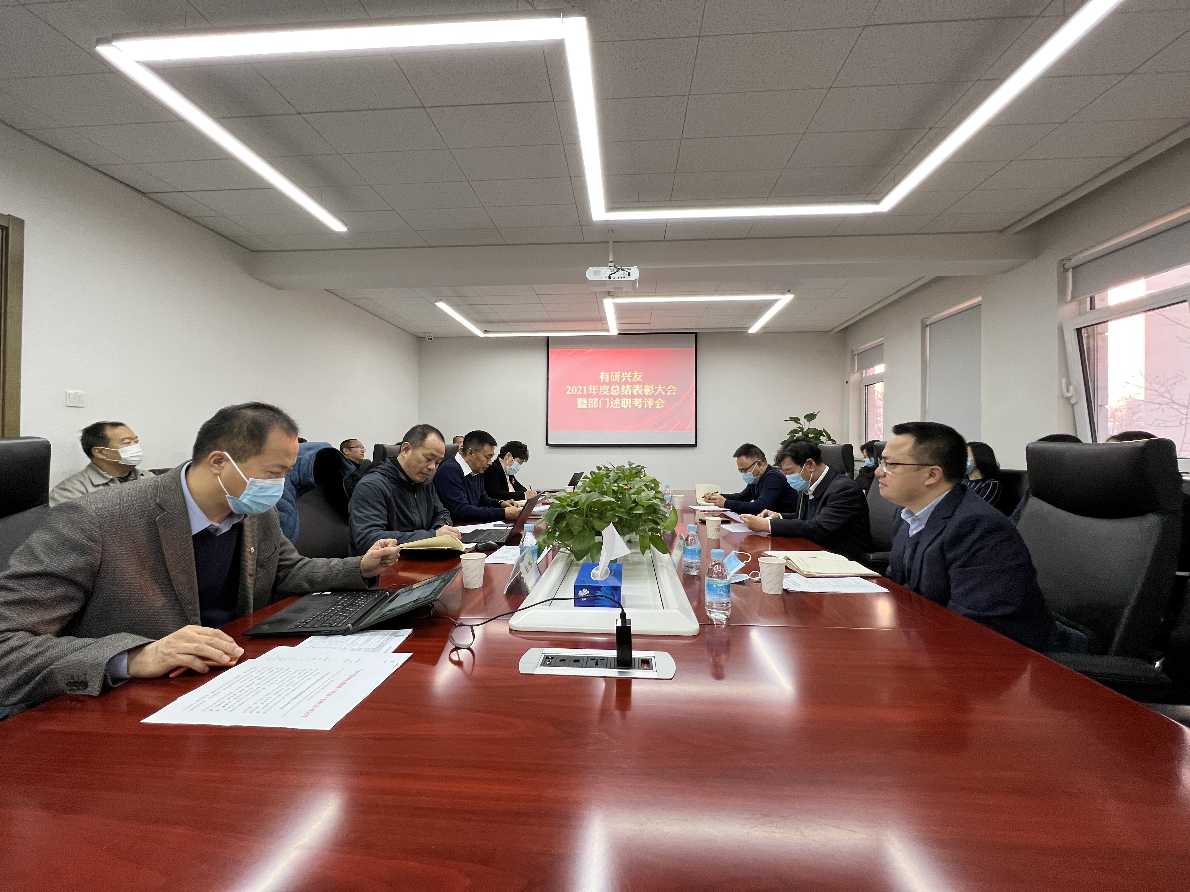 會議聽取了各部門及下屬單位負責人所做的年度工作總結。沈健代表公司經營班子,從年度經營狀況、重點工作開展、黨建工作,存在的問題與不足以及下一年度工作任務目標等五個方面做了匯報。公司副總經理田偉宣讀了《關于表彰有研興友2021年度優(yōu)秀員工的決定》,對王志超等10名優(yōu)秀員工予以表彰。