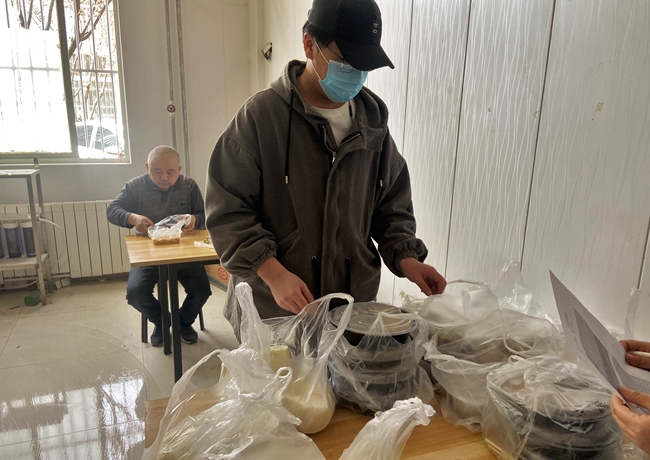 園區(qū)封閉管理后,為減少園區(qū)堂食交叉感染風險,防疫服務(wù)小隊成員將食堂盒飯分發(fā)給員工,以便于大家在食堂和辦公室中單獨進餐。每隔三天,防疫服務(wù)小隊還會從外部統(tǒng)一采購生活日用物資,將其分發(fā)給大家,保障員工的起居飲食。