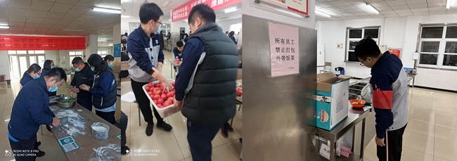 有研國(guó)晶輝團(tuán)支部不定期給職工分發(fā)新鮮水果和蔬菜,并聯(lián)合條保部開(kāi)展“包餃子,吃餃子”活動(dòng),同時(shí)成立青年“后勤小分隊(duì)”,提供全方位服務(wù)保障,不斷豐富駐廠職工生活、飲食多樣性,保障職工身體健康,使駐廠職工感受到家的溫暖。
