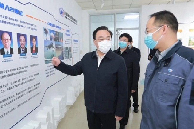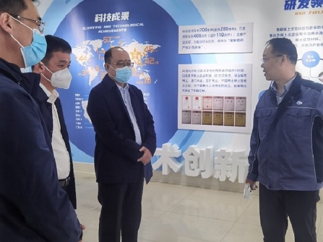 4月14日上午,威海市委副書記、市長(zhǎng)閆劍波到有研稀土(榮成)公司調(diào)研疫情防控、企業(yè)經(jīng)營(yíng)狀況,威海市副市長(zhǎng)徐明等領(lǐng)導(dǎo)陪同。有研稀土(榮成)公司黨支部書記、總經(jīng)理馬躍華介紹相關(guān)工作情況。