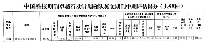 近日,中國科技期刊卓越行動計劃辦公室發(fā)布了“中國科技期刊卓越行動計劃部分項目中期評估結果的通知”。由有研集團主辦、有科出版運營出版的《稀有金屬(英文版)》以101.00分的優(yōu)秀成績在99種梯隊英文期刊(平均分為81.84)中排名第一。
