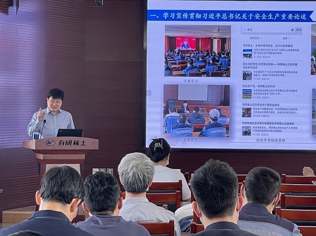 時(shí)任有研新材副總經(jīng)理、有研稀土總經(jīng)理于敦波以“筑牢安全根基,持續(xù)健康發(fā)展”為主題進(jìn)行了安全管理宣講。他重點(diǎn)從落實(shí)企業(yè)安全主體責(zé)任、危險(xiǎn)化學(xué)品專項(xiàng)整治、重大風(fēng)險(xiǎn)管控、全員安全生產(chǎn)責(zé)任制、安全文化建設(shè)等方面進(jìn)行深入講解,對(duì)安全生產(chǎn)法進(jìn)行了系統(tǒng)深入的解讀,并對(duì)有研稀土安全工作進(jìn)行了概括總結(jié)和詳細(xì)部署。