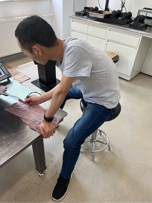 無(wú)損檢測(cè)部青年正在進(jìn)行超聲無(wú)損檢測(cè)工作。