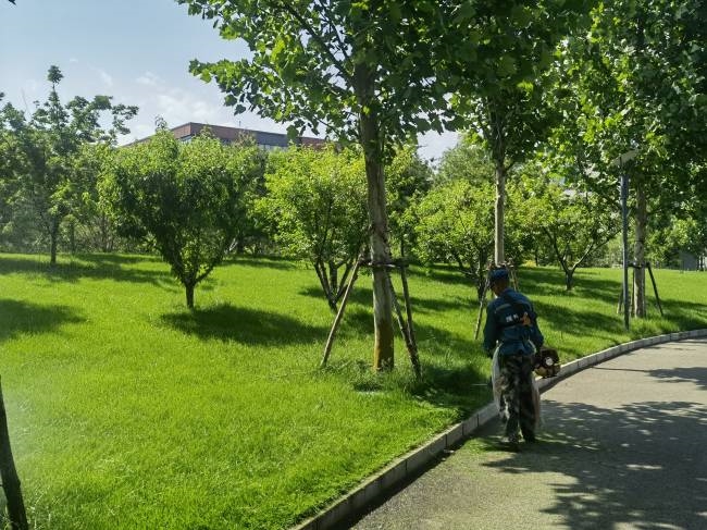 在二部園區(qū),9:00,運(yùn)營(yíng)保障人員更換水表;11:00,綠化工作人員修繕菜園,種植有機(jī)蔬菜;13:00,餐飲工作人員擦洗大灶做保潔;14:00,餐飲工作人員利用短暫的午休時(shí)間開(kāi)展公共安全衛(wèi)生及食品安全生產(chǎn)培訓(xùn)。