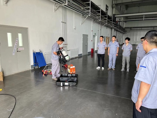 活動(dòng)開始前,專業(yè)人員進(jìn)行了正壓式呼吸器救援工具使用的現(xiàn)場(chǎng)教學(xué),使員工能夠熟練掌握使用方法。