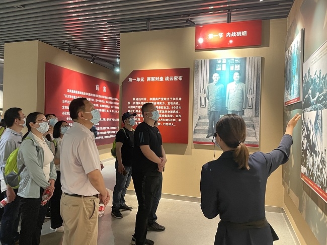 在孟良崮戰(zhàn)役遺址區(qū),全體黨員烈日下重走行軍路,瞻仰“孟良崮戰(zhàn)役紀(jì)念碑”,切身感受革命先輩的奮斗精神;在戰(zhàn)役紀(jì)念館,通過文物史料的學(xué)習(xí),深刻感悟沂蒙精神。