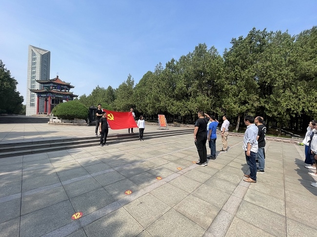 在戰(zhàn)役紀(jì)念館烈士墓區(qū),青島聯(lián)合黨支部舉行了“向英雄致敬”紀(jì)念儀式,表達(dá)對革命先烈們的崇高敬意和緬懷之情。面對鮮紅的黨旗,全體黨員高舉右拳,重溫入黨誓詞,不忘初心、牢記使命。