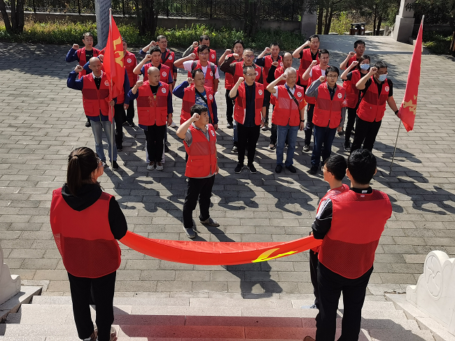活動(dòng)當(dāng)天,支部黨員前往后方醫(yī)院遺址、牌樓、忠魂亭、烈土紀(jì)念碑、烈土墓區(qū)、浮雕墻等地重溫烈士戰(zhàn)斗的足跡,身臨其境的感受冀熱察遼后方醫(yī)院的革命歷史。在特種事業(yè)部黨支部書記鄒維東帶領(lǐng)下,全體黨員在烈士紀(jì)念碑前集體默哀,重溫入黨誓詞,共同接受一次精神洗禮。