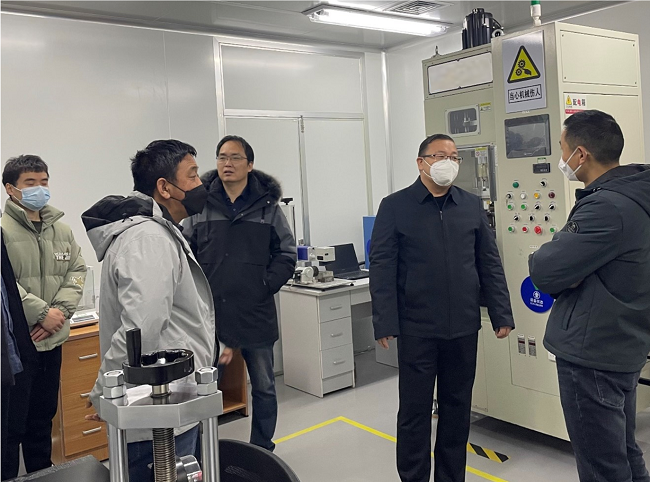 褚祝軍一行聽取了張慶猛對中國有研70年來的發(fā)展沿革和電子事業(yè)部主營業(yè)務(wù)的介紹,著重了解了吸氣劑材料及其衍生產(chǎn)品堿金屬源材料研究進(jìn)展和產(chǎn)品供應(yīng)情況,實(shí)地考察了堿金屬源材料生產(chǎn)線,認(rèn)真詢問了堿金屬源材料性能評價(jià)考核方式及用戶單位使用情況。