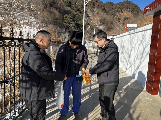 1月16日,國(guó)聯(lián)研究院第二黨支部書記方彥彥、紀(jì)檢委員崔義前往懷柔區(qū)湯河口鎮(zhèn)東灣子村開(kāi)展迎新春走訪慰問(wèn),東灣子村黨支部書記高財(cái)及支委委員等陪同走訪慰問(wèn)低保戶家庭,了解老人的身體和生活狀況,并送去慰問(wèn)品及新年祝福。