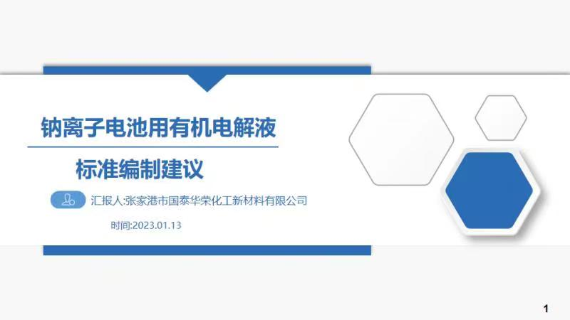 會上,江蘇九九久科技有限公司董事長周新基匯報了《鈉離子電池用六氟磷酸鈉》團(tuán)體標(biāo)準(zhǔn)立項工作相關(guān)情況,張家港市國泰華榮化工新材料有限公司秦虎博士匯報了《鈉離子電池用有機(jī)電解液》團(tuán)體標(biāo)準(zhǔn)立項工作相關(guān)情況。與會人員就兩項團(tuán)體標(biāo)準(zhǔn)的立項方案展開研討,大會一致同意兩項團(tuán)體標(biāo)準(zhǔn)正式立項,同時提出了相關(guān)意見建議。