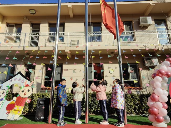 2月13日上午,有研幼兒園全體師幼帶著希望,帶著憧憬,舉行了新學(xué)期的開學(xué)典禮。大班升旗手高舉著五星紅旗入場,在莊嚴(yán)的國歌聲中,五星紅旗冉冉升起。國旗下,兩園的執(zhí)行園長和大班小朋友為新學(xué)期送上了美好的祝福。
