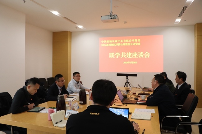 2月20日上午,中國鐵道科學研究院集團有限公司標準所黨委書記、中鐵檢驗認證中心有限公司監(jiān)事趙雋一行到訪中國有研懷柔科創(chuàng)園,與國合通測舉行聯(lián)學共建座談。國合通測黨委書記、董事長趙春雷,黨委副書記上官永恒,副總經(jīng)理金橋,以及中鐵檢驗認證中心和國合通測有關部門同志出席會議。