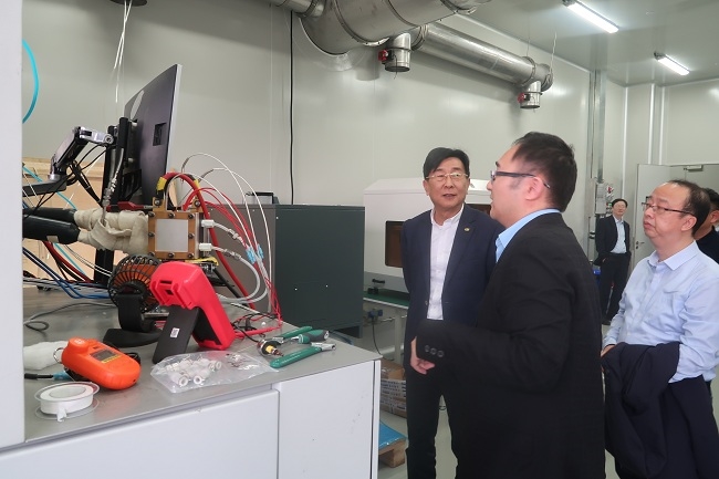 張少明一行先后參觀了有研廣東院動力電池檢測中心、燃料電池關(guān)鍵部件研究室、新一代制儲運(yùn)氫關(guān)鍵材料研究室、集成電路鍵合材料研究室和固態(tài)電池研究室。