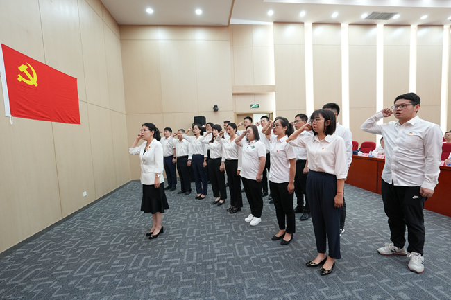 大會在莊嚴的國歌聲中拉開序幕,新發(fā)展黨員面向黨旗鄭重宣誓,許下為共產(chǎn)主義事業(yè)奮斗終身的堅定承諾。