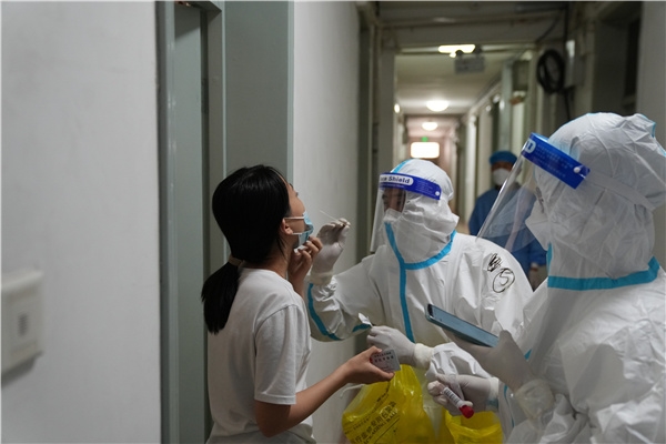 為配合好社區(qū)開展全員核酸檢測,一線黨員干部將有研志愿者們分配到樓,為社區(qū)每個樓每個單元配備“小樓長”。“小樓長”們與社區(qū)衛(wèi)生服務中心醫(yī)務人員,組成三人組,帶著棉簽、試管、消毒瓶、信息登記表等一系列用品,迅速、準確、高效的完成每一次入戶采樣工作。在入戶采樣中,有研志愿者們還紛紛當起了“小隊長”“消毒員”“采集員”,負責為社區(qū)工作人員帶路,拎空管、挨家挨戶敲門確認人數(shù)、收還身份證、認真進行信息登記采集,確保不漏一人。志愿者們在結(jié)束志愿服務后,還為工作人員提出優(yōu)化建議,助力后續(xù)工作的順利進行,“小白”也在逐漸成長為“大白”。